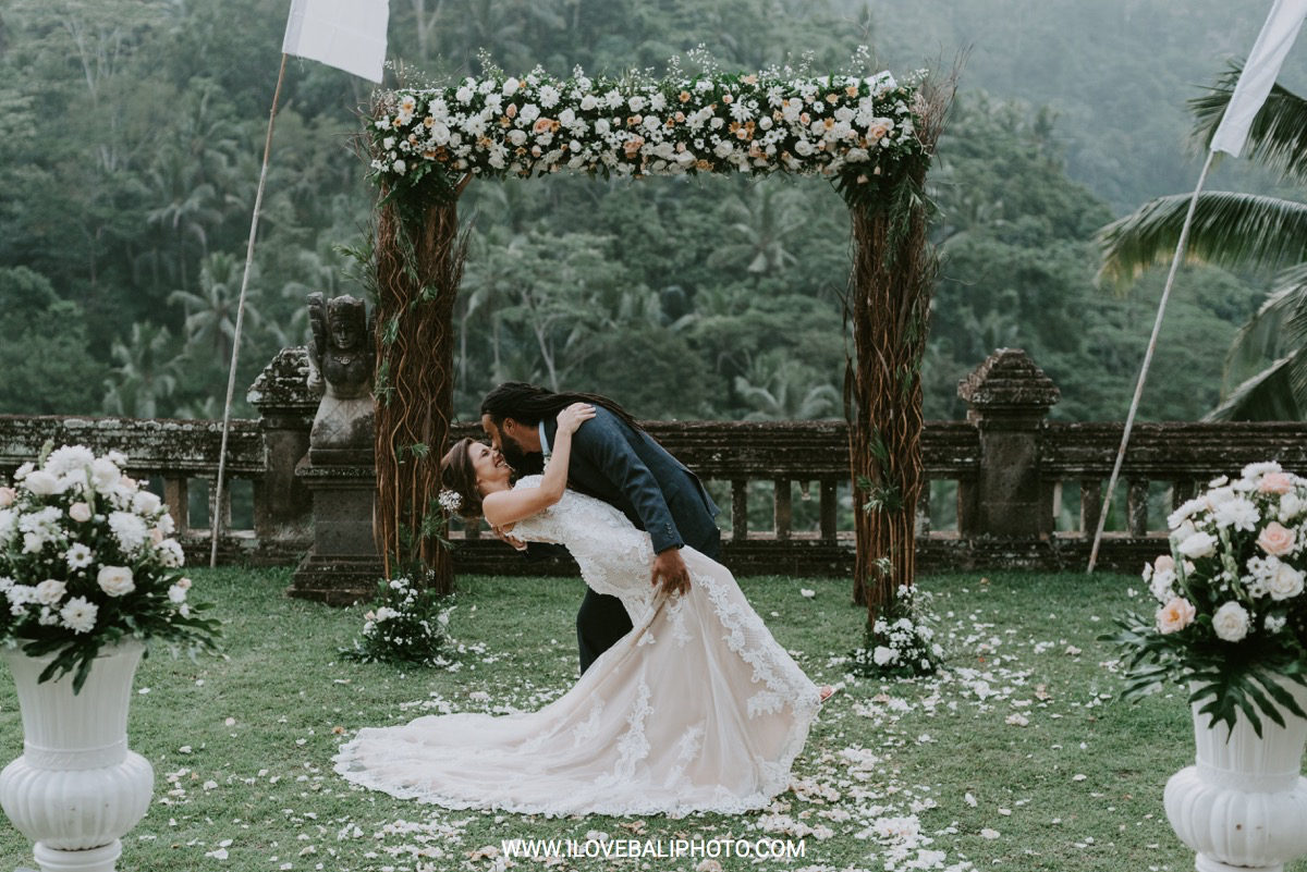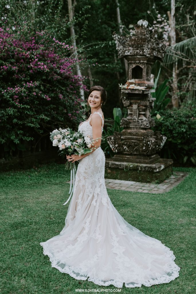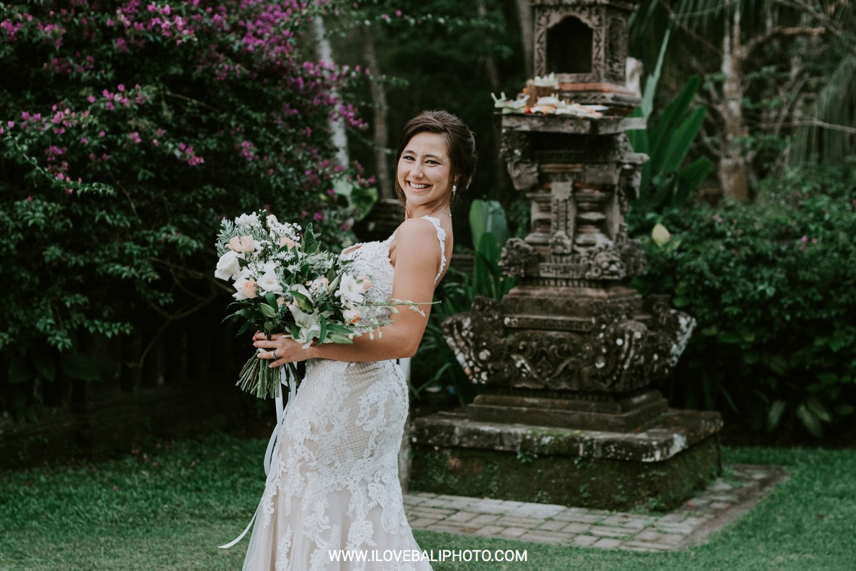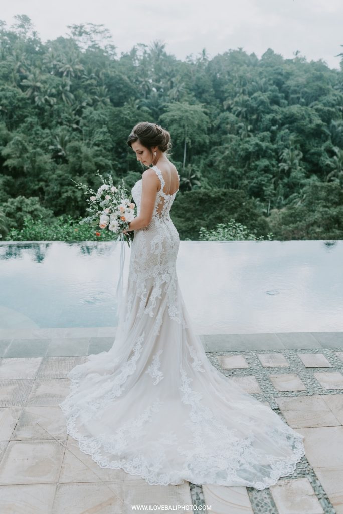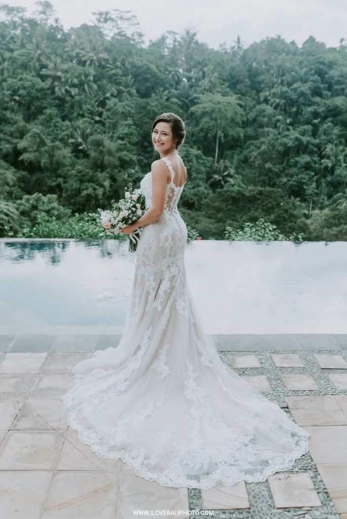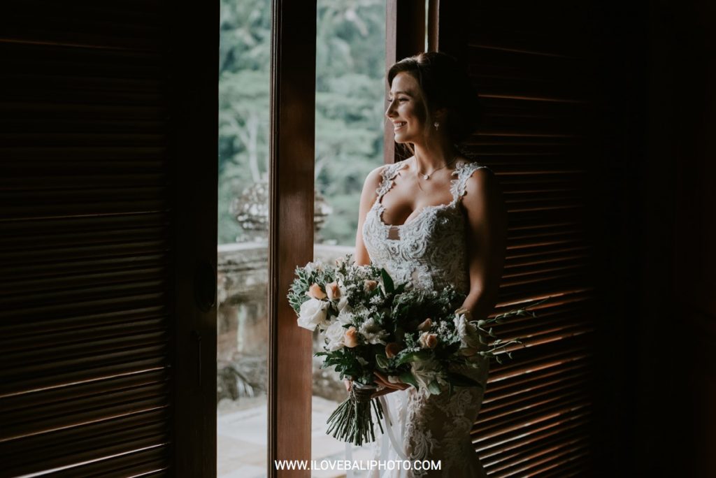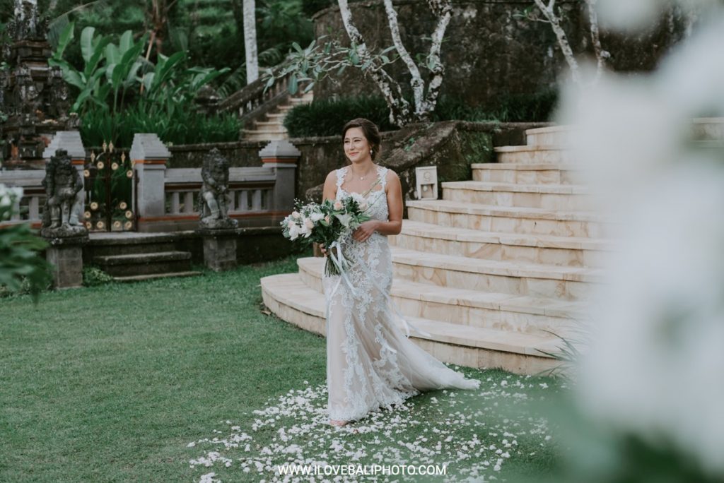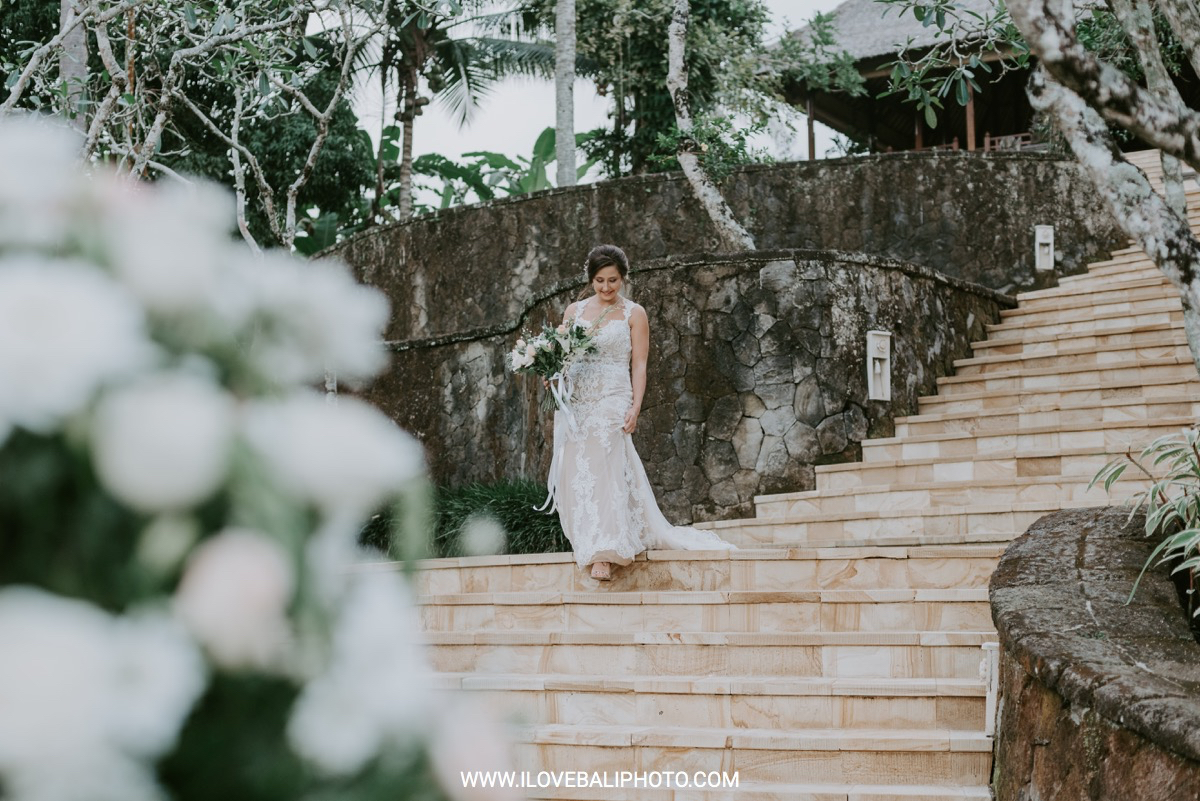 Fallon and Christopher just choose Bali for the second reason. They want something intimate to celebrate their elopement. Their choice fell on Ubud which is known as a quiet place. A resort called Puri Wulandari is the right place for them. Located in the sub-district of Ubud, their resort appears to stand firmly on a cliff, overlooking a ravine and dense forest.