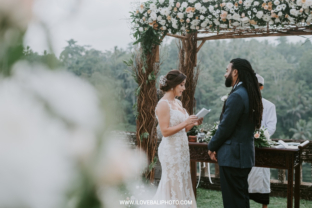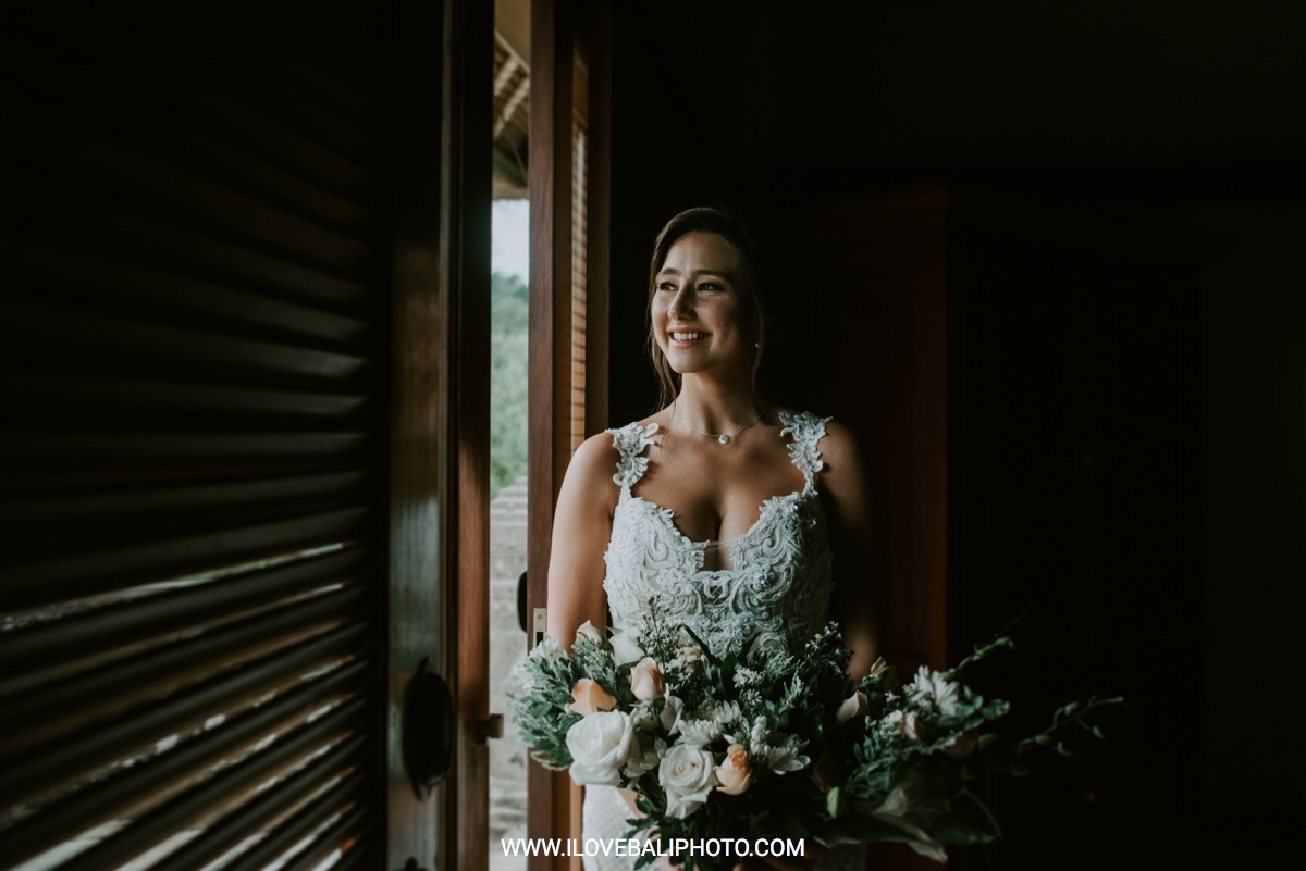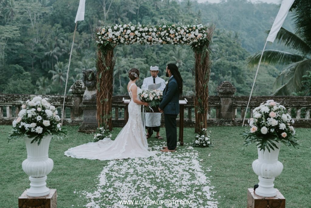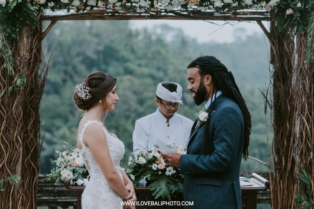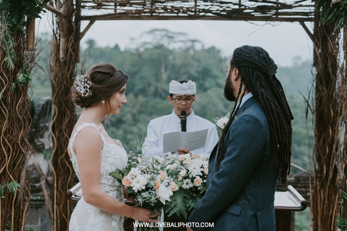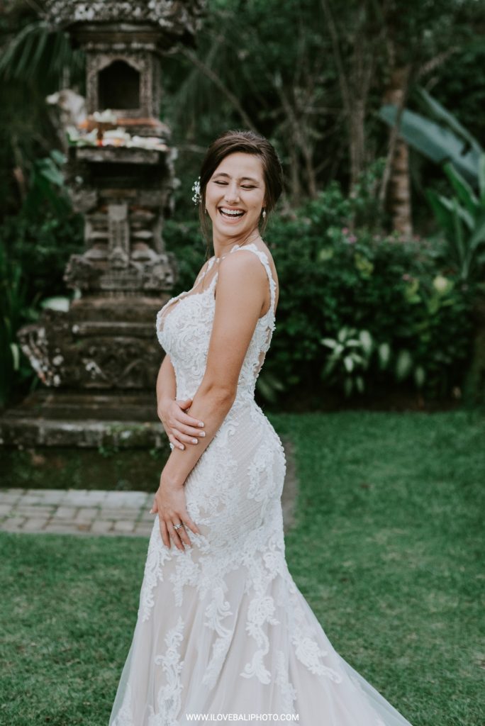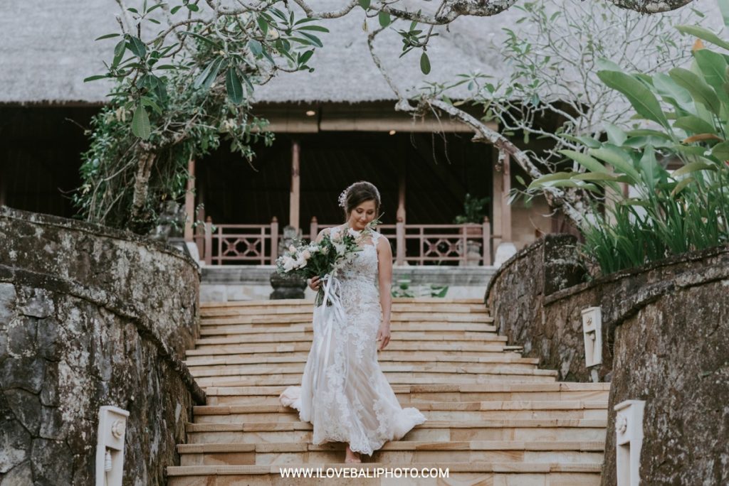 Fallon and Christopher just choose Bali for the second reason. They want something intimate to celebrate their elopement. Their choice fell on Ubud which is known as a quiet place. A resort called Puri Wulandari is the right place for them. Located in the sub-district of Ubud, their resort appears to stand firmly on a cliff, overlooking a ravine and dense forest.