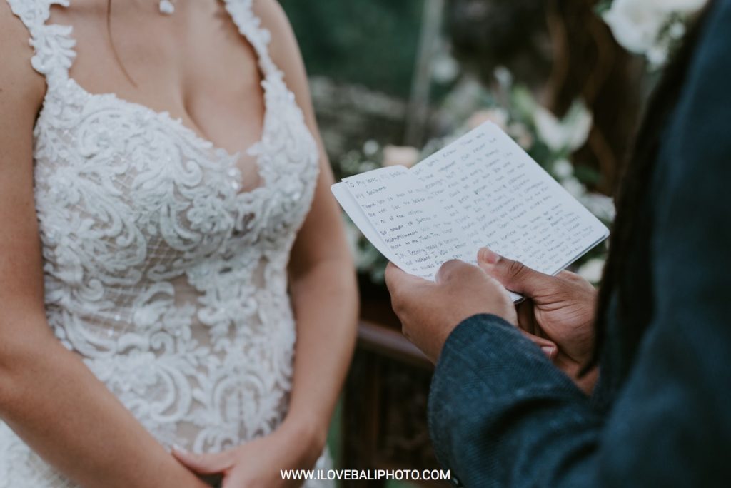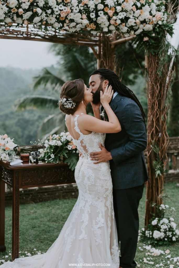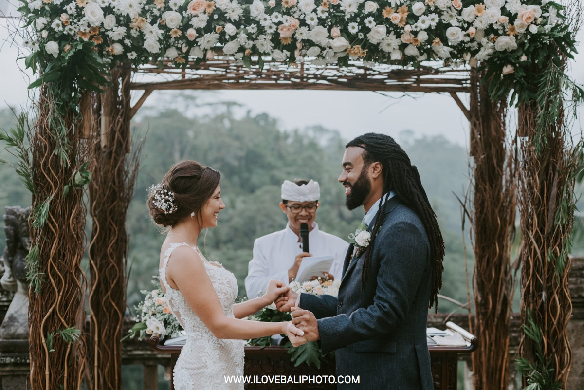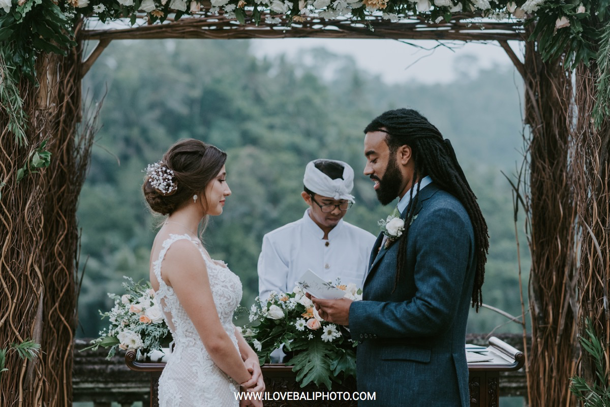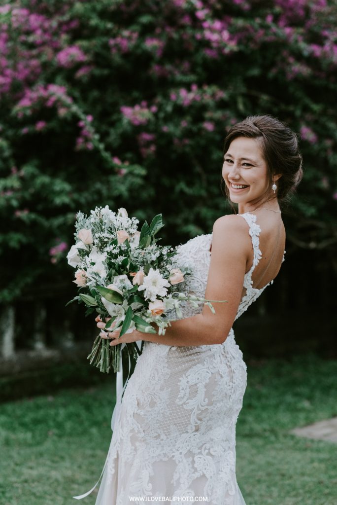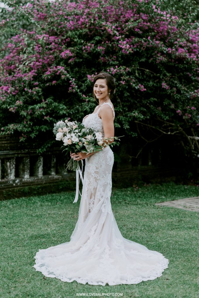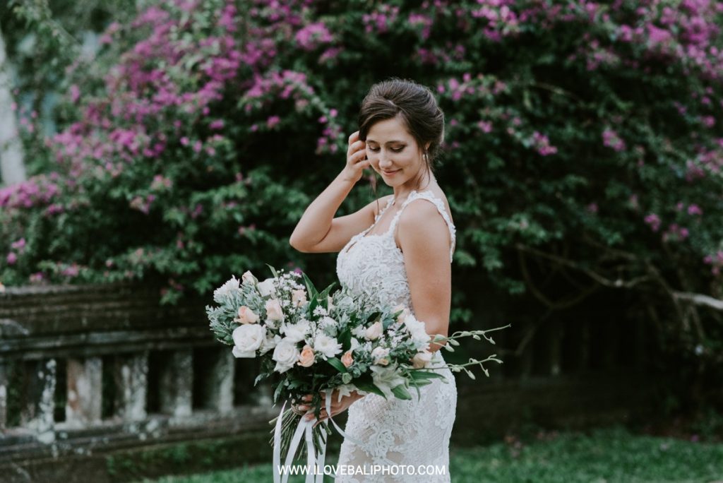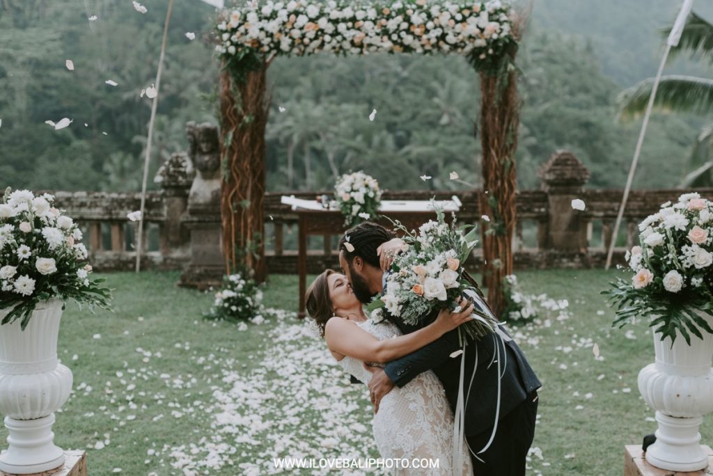 Fallon and Christopher just choose Bali for the second reason. They want something intimate to celebrate their elopement. Their choice fell on Ubud which is known as a quiet place. A resort called Puri Wulandari is the right place for them. Located in the sub-district of Ubud, their resort appears to stand firmly on a cliff, overlooking a ravine and dense forest.